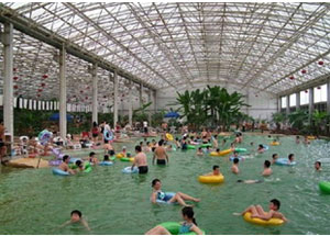 江蘇省洪澤縣老子山溫泉風(fēng)景 溫泉陽(yáng)光浴場(chǎng)展示出亮麗的南國(guó)風(fēng)情,分布大型泳池和品類各異的水療、魚(yú)療、花藥浴、泥巴浴,不僅具有神奇的理療保健作用,還兼?zhèn)渑哦攫B(yǎng)顏、美白肌膚、調(diào)理身心等多重功效,享有蘇北熱海、澤國(guó)仙境、華東首席溫泉度假區(qū)之美譽(yù)。