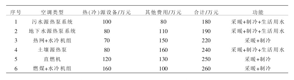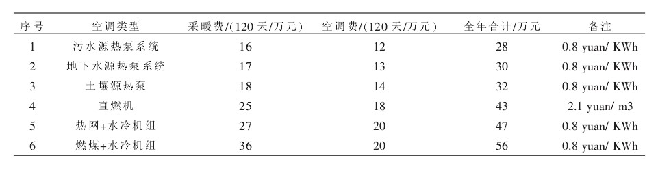 從上述表格可以明顯地看出來,污水源熱泵系統有良好的經濟效益,與地下水源熱泵、直燃機、熱網+水冷機組、燃煤+水冷機組等系統相比,該系統經濟優勢十分明顯。