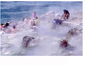 云南滴水河溫泉風(fēng)景滴水河溫泉以泉群形式出露,出水點(diǎn)散布于滴水河河床及河漫灘上,地表為第四系礫石、砂等沖洪積物覆蓋,滴水河溫泉出露特征高程與躍進(jìn)橋溫泉和瑪布河溫泉不同,其出露高程為1502.3m,相對(duì)較高。